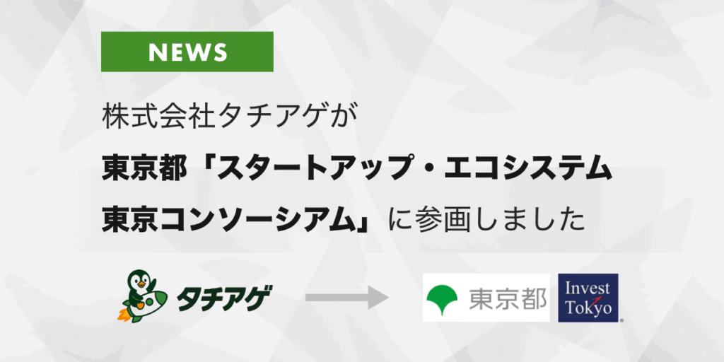 株式会社タチアゲが東京都「スタートアップ・エコシステム 東京コンソーシアム」参画企業として掲載されました